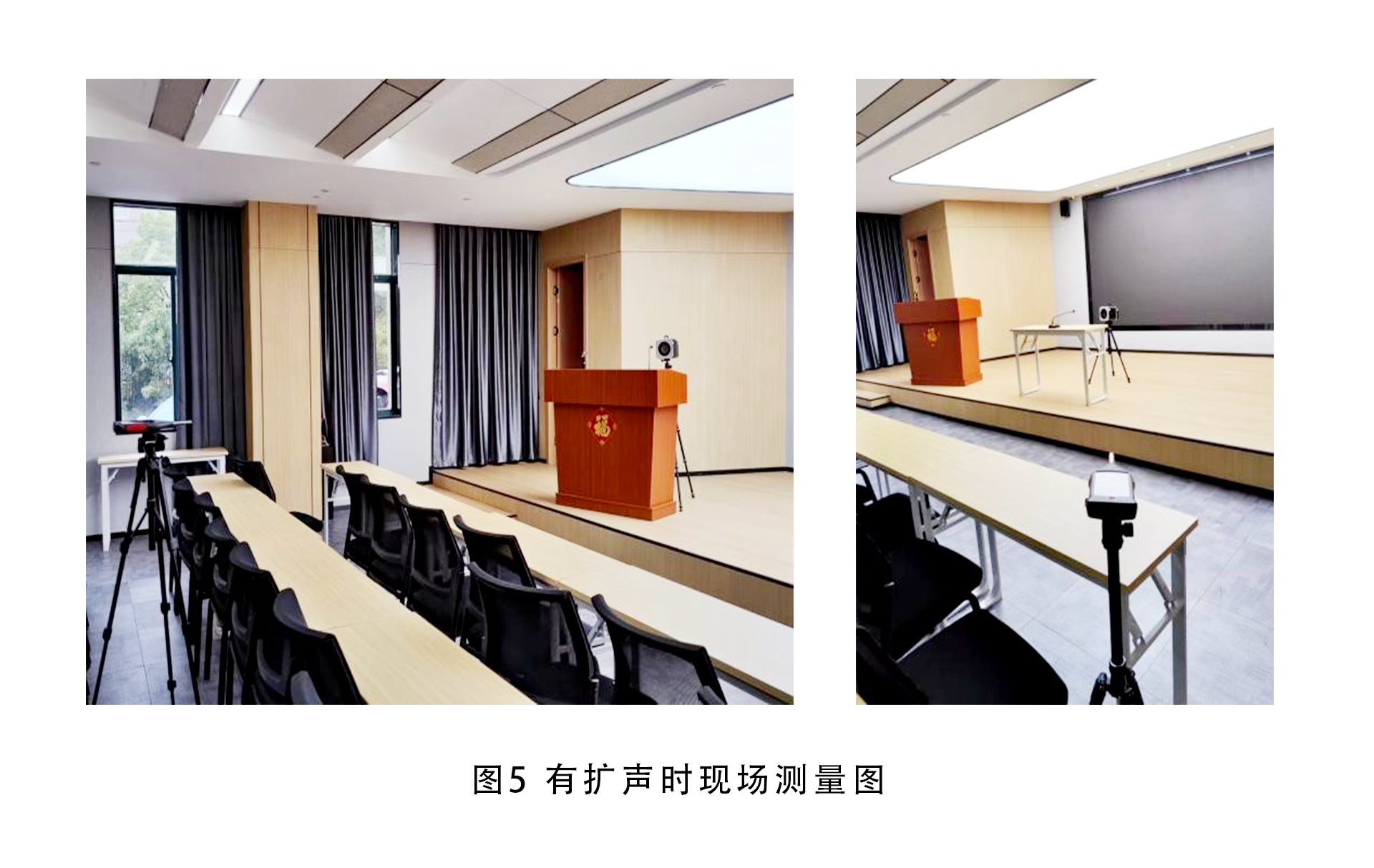 对于没有扩声系统的房间,例如一般的小会议室、教室、接待室,测试信号由AWA5512型智能声源在说话人位置播放,并在距离声源1米处声压级达到 60 dBA(必要时置于70 dBA),由AWA6292型声级计测量和分析声学场所的各项声学指标。